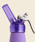 - Attach the top of the dispenser and screw in a nitrous oxide charger (sold separately) until you hear a slight hiss, indicating the gas is released. Ultra-Purewhip chargers are a great option.